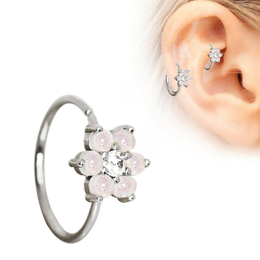 Stainless Steel Synthetic Opal Flower Lip Ring