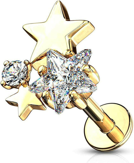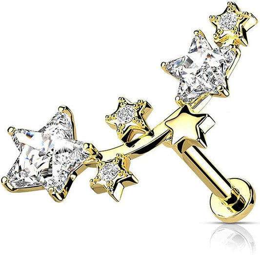 Surgical Steel Internally Threaded Multi Star CZ Vine Top Flat Back Stud for Labret Monroe Cartilage