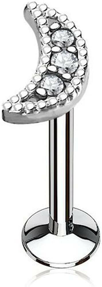 Surgical Steel Internally threaded CZ Paved Crescent Top Labret Monroe Cartilage Studs