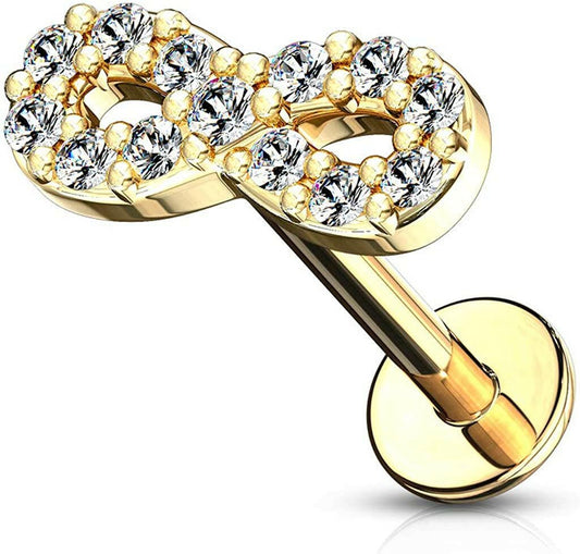 Surgical Steel Internally Threaded CZ Paved Infinity Symbol Top Flat Back Studs for Labret Monroe Ear Cartilage