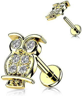 Surgical Steel Internally Threaded CZ Paved Owl Top Flat Back Stud for Labret Monroe Cartilage