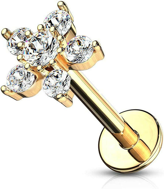Surgical Steel Internally Threaded Double Tiered 6 CZ Flower Top Labret Monroe Ear Cartilage Studs