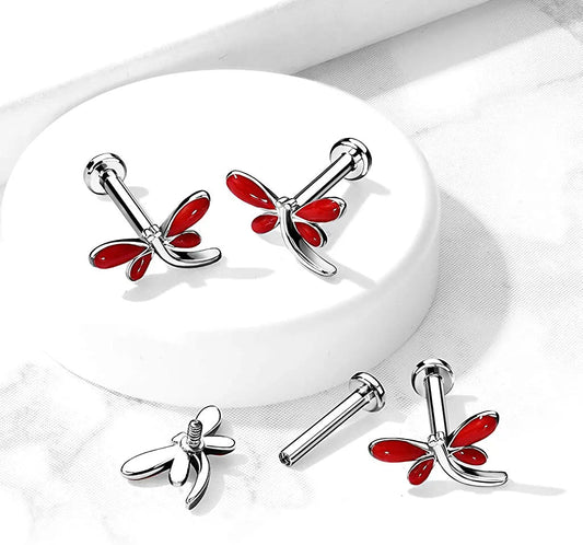 Surgical Steel Internally Threaded Dragonfly Top on Flat Back Stud for Labret Monroe Cartilage