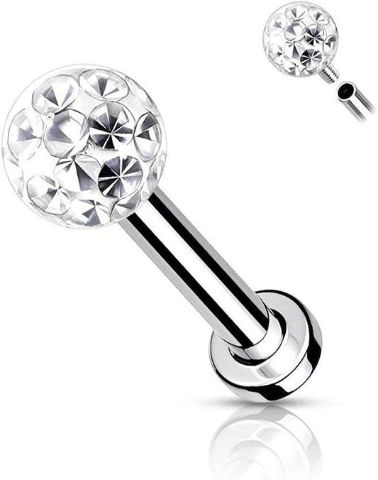 Surgical Steel Internally Threaded Epoxy Covered Crystal Paved Ball Top Flat Back Studs for Labret Monroe Cartilage