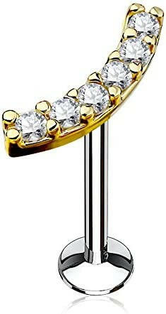 Surgical Steel Internally threaded Lined CZ Curve Top Labret Monroe Cartilage Studs