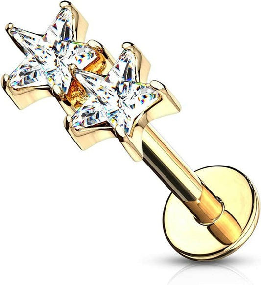 Surgical Steel Internally Threaded Twin CZ Star Top Flat Back Studs for Labret Monroe Ear Cartilage