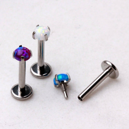 Internally Threaded 316L Stainless Steel Labret with Prong Set Synthetic Opal