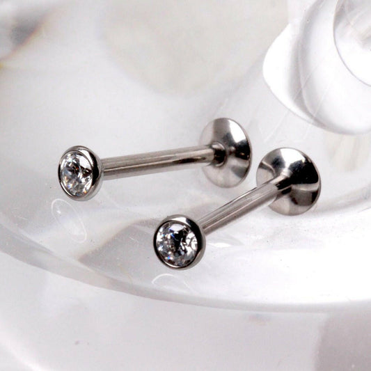 Internally Threaded Titanium Labret with Clear CZ Flat Top