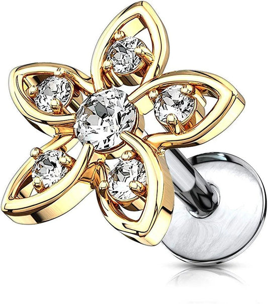 Surgical Steel CZ Flower Top Internally Threaded Labret Monroe Ear Cartilage Studs