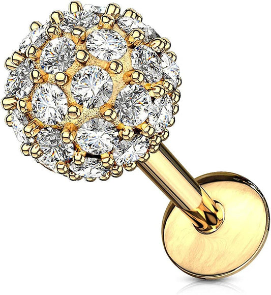 Surgical Steel Internally Threaded CZ Paved Ball Top Labret Monroe Ear Cartilage Studs