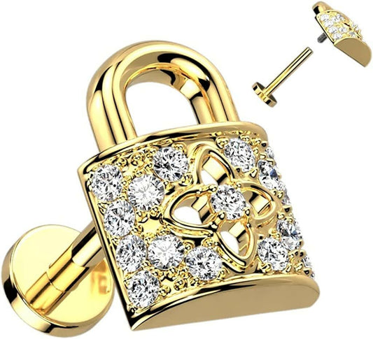 Surgical Steel Internally Threaded CZ Paved Lock Top on Flat Back Stud for Labret Monroe Cartilage