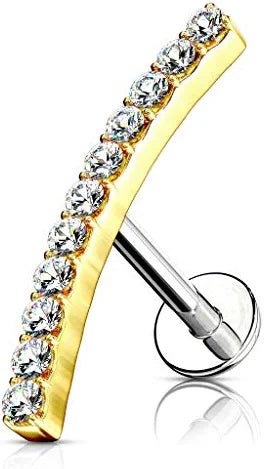 Surgical Steel Internally Threaded Lined CZ Curve Top Labret Monroe Cartilage Studs