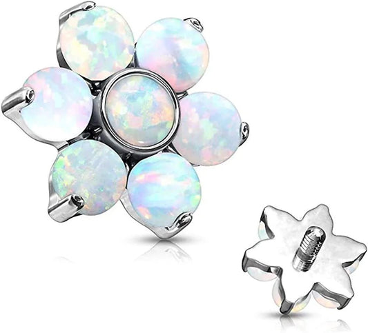 Surgical Steel Internally Threaded Opal Flower Top Parts For Labret Dermal