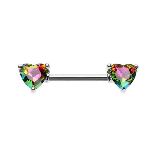 Iridescent Double Heart Gem Nipple Barbell Ring
