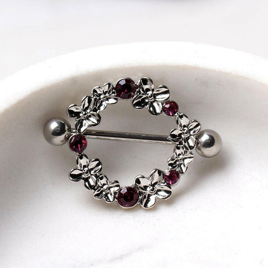 Stainless Steel Pink Flower Wreath Nipple Shield