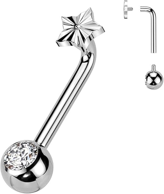 Implant Grade Titanium Internally Threaded L Bent Christina Piercing Jewelry With Star Diamond Cut Top and Pressed Fit Gem End