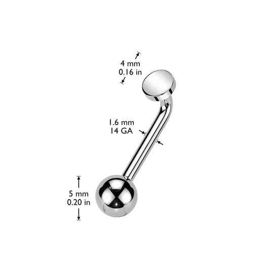 Implant Grade Titanium Internally Threaded L Bent Christina Piercing With Ball Top