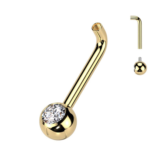 Implant Grade Titanium Internally Threaded L Bent Christina Piercing Barbell With Pressed Fit Gem End