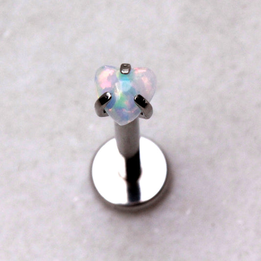 Internally Threaded 316L Stainless Steel Labret with Prong Set Heart Synthetic Opal