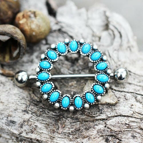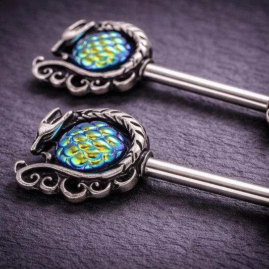 Stainless Steel Cabochon Dragon Nipple Bar Rings