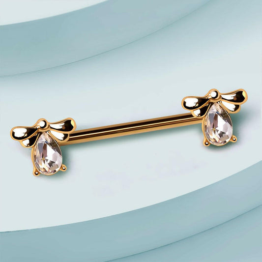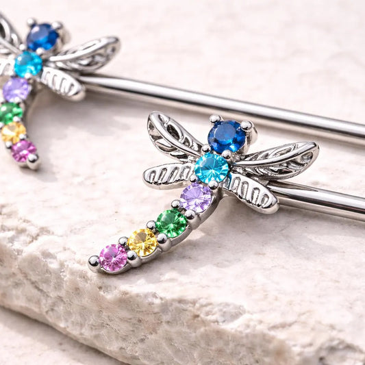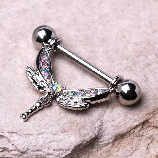 Stainless Steel Aurora Borealis Dragonfly Nipple Ring