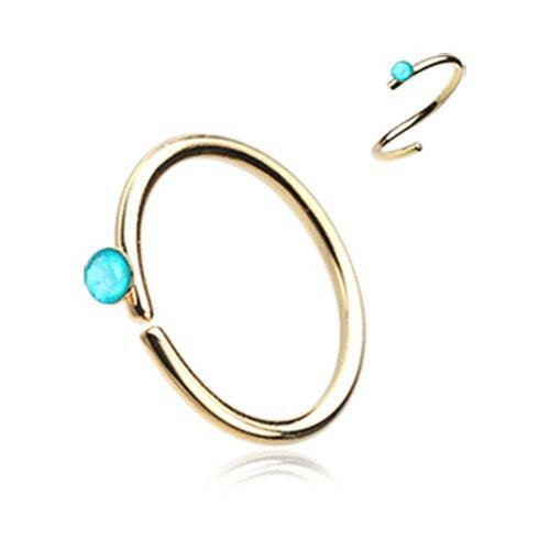 Golden Turquoise Bead Top Bendable Steel Nose Hoop