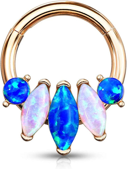Surgical Steel 5-Marquise Opal Hinge Hoops for Ear Nose Septum