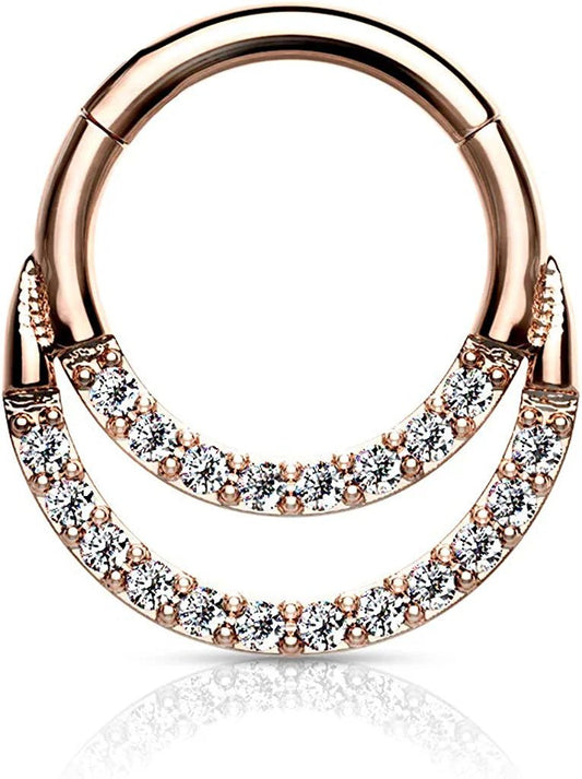 Surgical Steel CNC Double Lined CZ Hinged Segment Hoop Ring