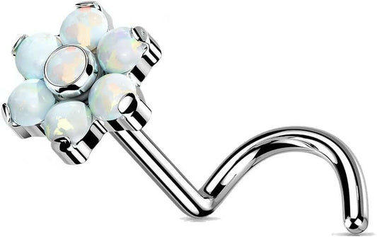 • Titanium Threadless Push in With Bezel Center and Petals CZ or Opal Flower Top Nose Screw Rings Nose Ring Impulse Piercings 20GA Length: 6mm Clear