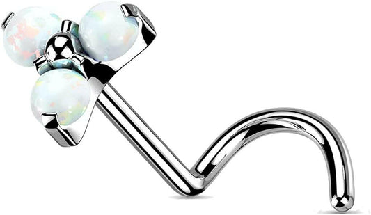 Titanium Threadless Push in with CZ or Opal Trinity Top Nose Screw Rings