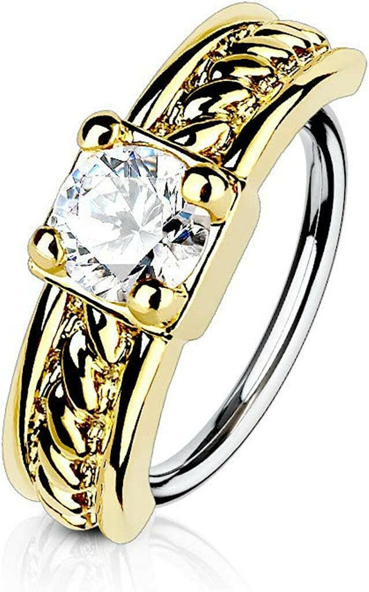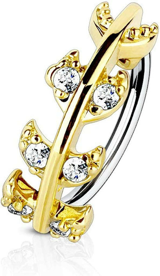 Surgical Steel CZ Paved Vine Top Nose Cartilage Hoop Rings