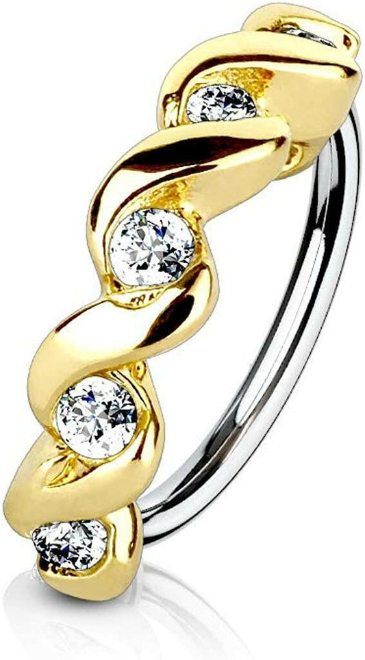 Surgical Steel CZ Twisted Half Circle Top Nose Cartilage Hoop Rings