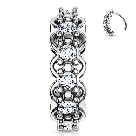 Surgical Steel Lined CZ Center with Filigree Edges Bendable Hoops for Nose Ear Cartilage