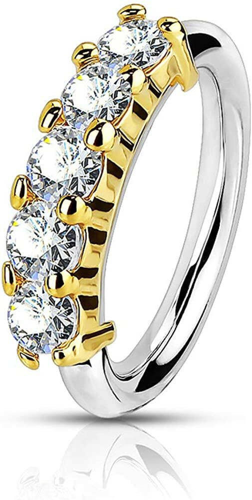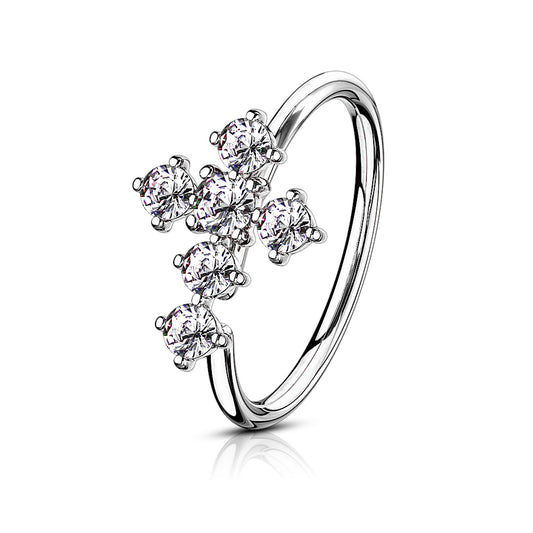 Surgical Steel 5 Lined CZ Bendable Nose Cartilage Hoop Rings