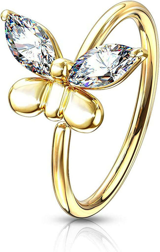 Brass CZ Butterfly Bendable Nose Cartilage Hoop Rings