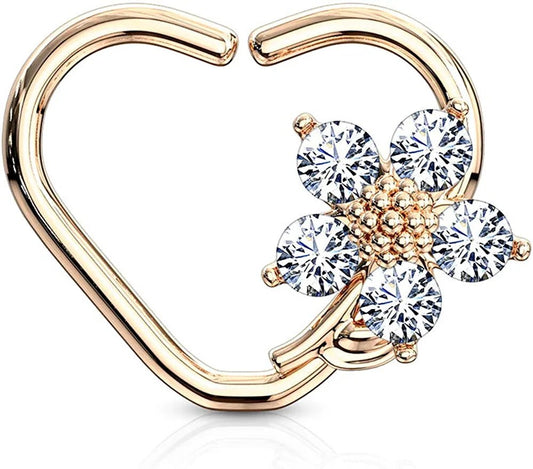 Brass CZ Flower Heart Shape Ear Cartilage Daith Hoop Rings