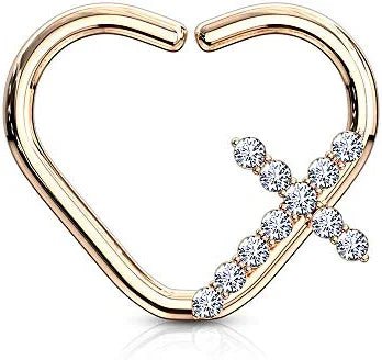 Brass CZ Paved Cross Heart Shape Ear Cartilage Daith Hoop Rings