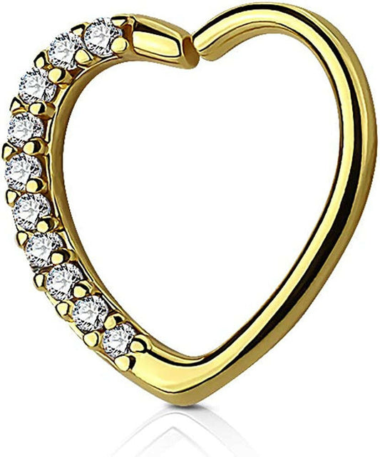 Brass Lined CZ Heart Ear Cartilage Daith Hoop Rings