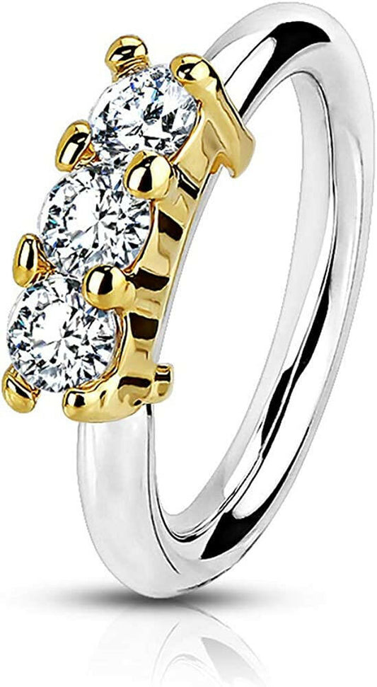 Surgical Steel 3 Lined CZ Bendable Nose Cartilage Hoop Rings