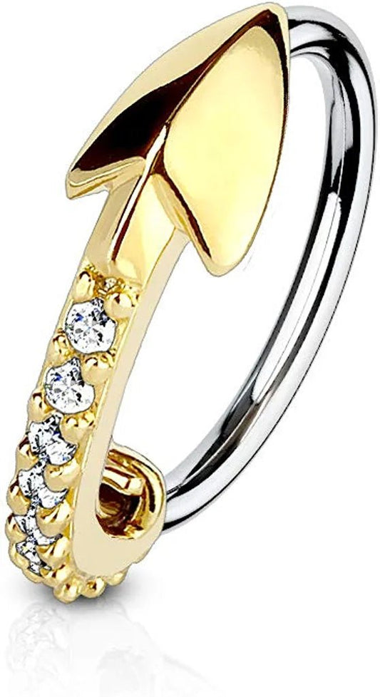 Surgical Steel CZ Paved Arrow Nose Cartilage Hoop Rings