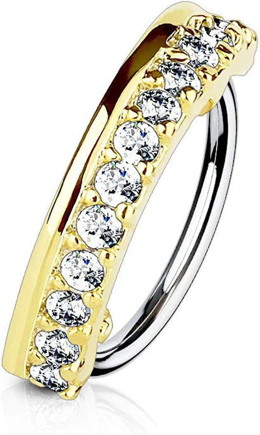 Brass Half Circle Lined CZ Bendable Hoop Rings for Septum Ear Cartilage Daith