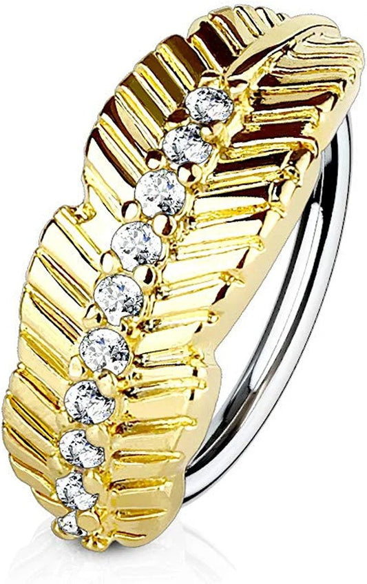 Surgical Steel Leaf Design with CZ Paved Center Nose Cartilage Hoop Rings