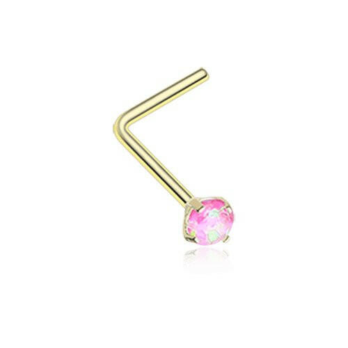 Golden Opal Sparkle Prong Set L-Shaped Nose Ring