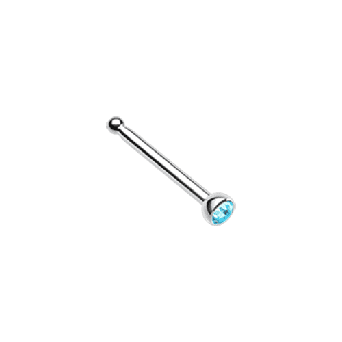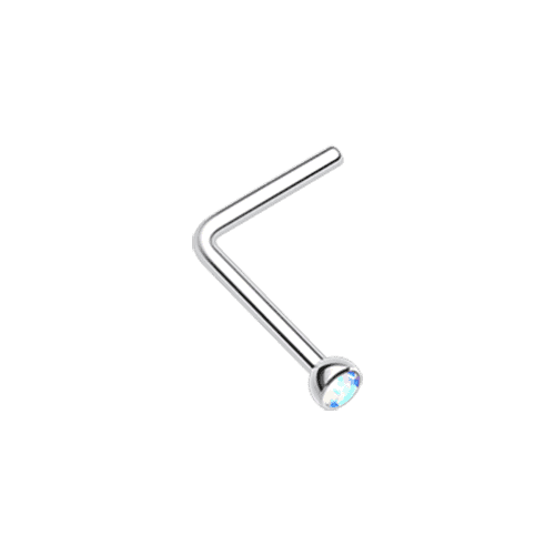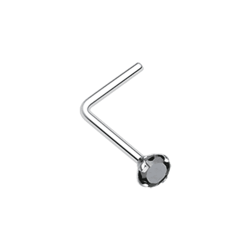 Prong Set Gem Top Steel L-Shaped Nose Ring