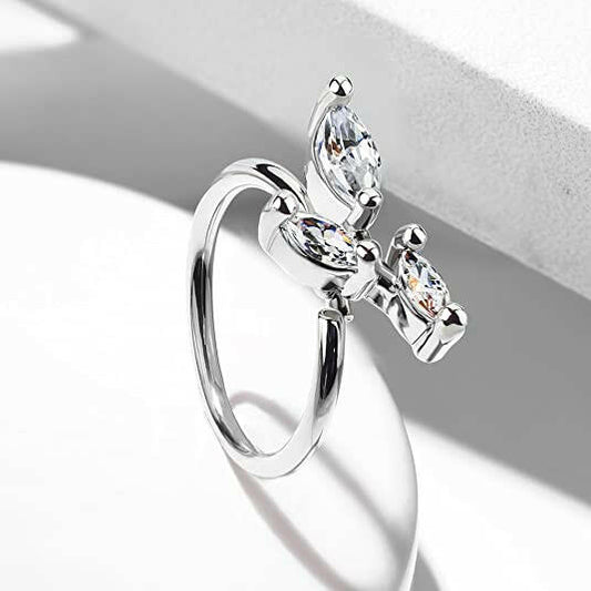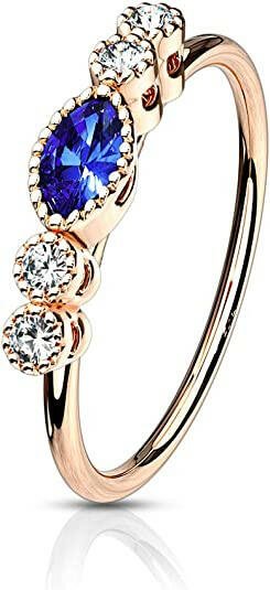 Surgical Steel Clear CZ with Saphire Marquise CZ Center Top Bendable Hoop Nose Rings