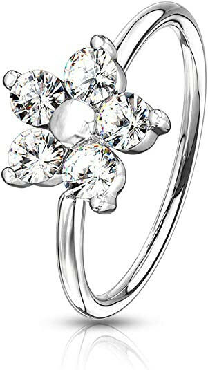 Brass CZ Flower Top Bendable Hoop Nose Rings
