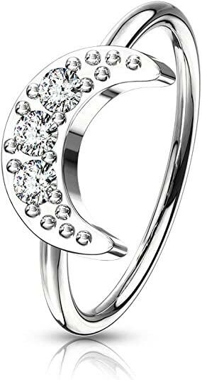 Brass CZ Paved Crescent Moon Bendable Hoop Nose Rings