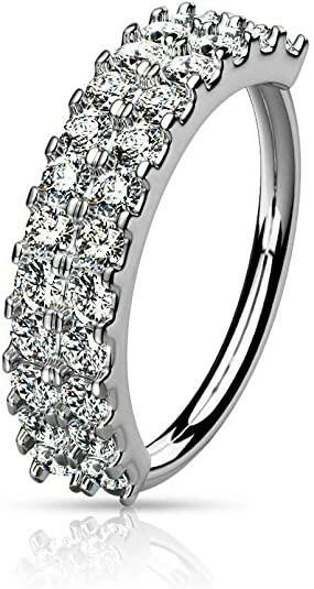 Brass Double Lined CZ Half Circle Bendable Hoop Nose Rings