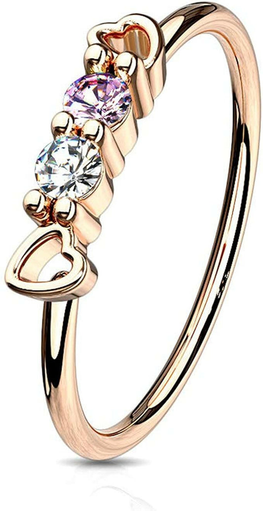 Surgical Steel CZ hearts Top Bendable Hoop Nose Rings