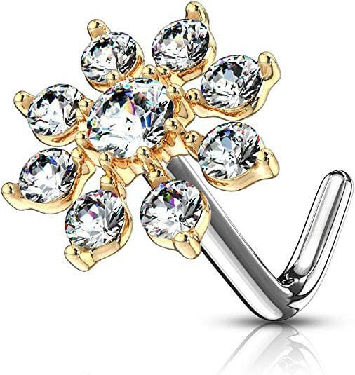 Surgical Steel Illuminating Stone Flower Top All L Bend Nose Rings